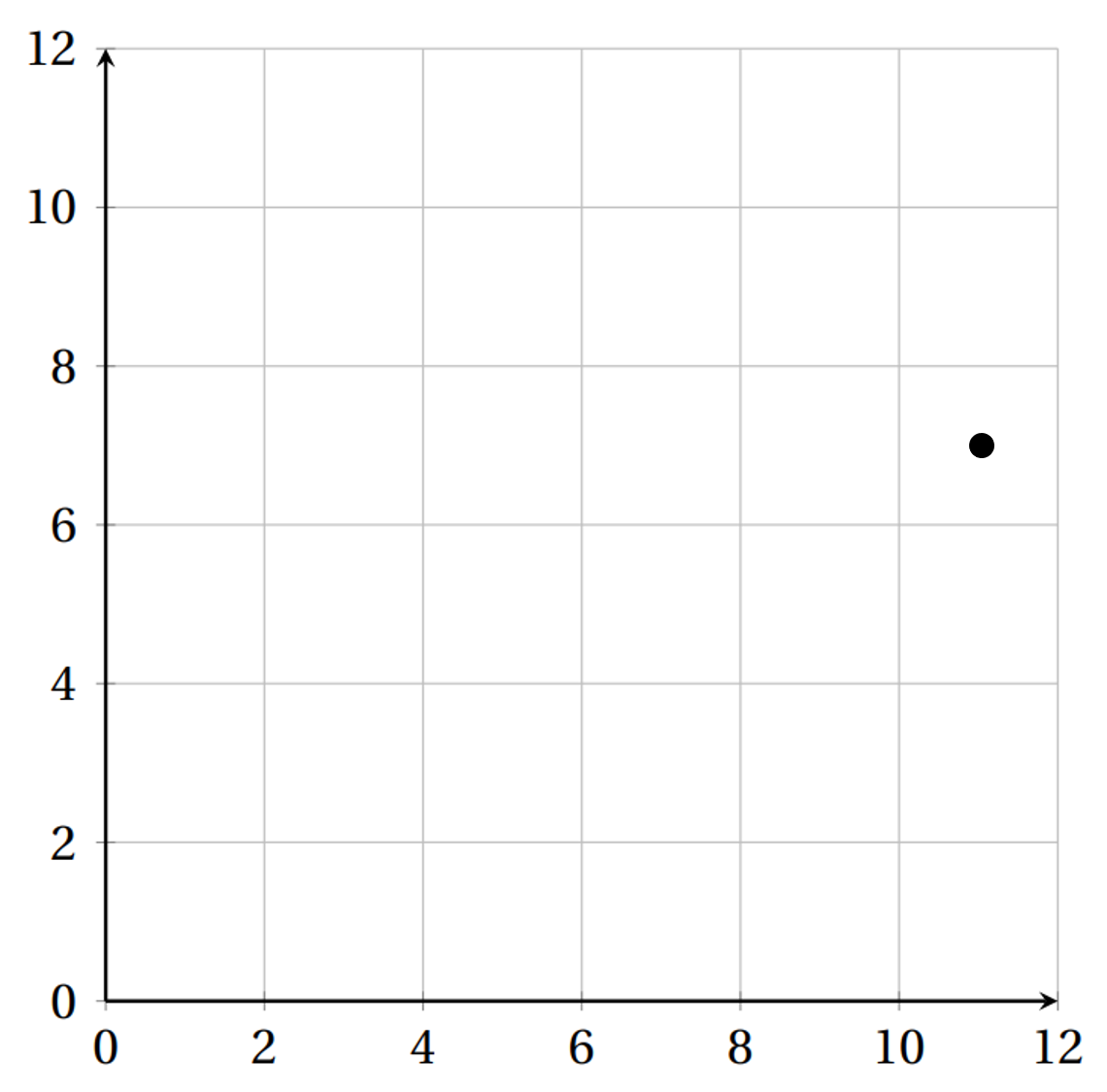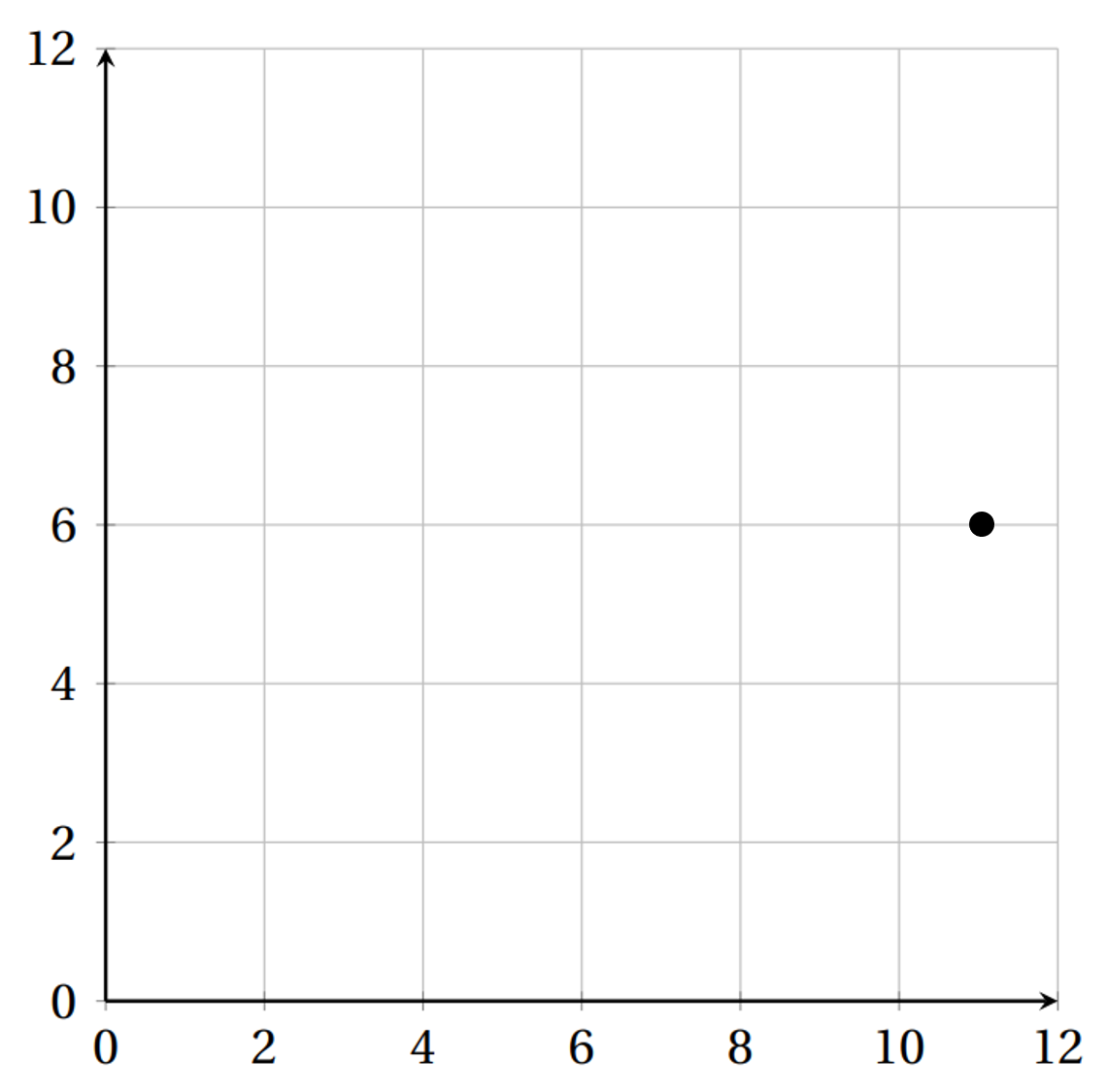 Choose the correct plot of the coordinate (11,6) on the graph below.
