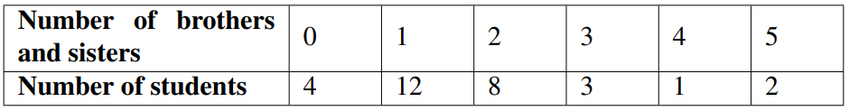 A group of students were asked how many brothers and sisters they had. Their answers are recorded in the table below.
