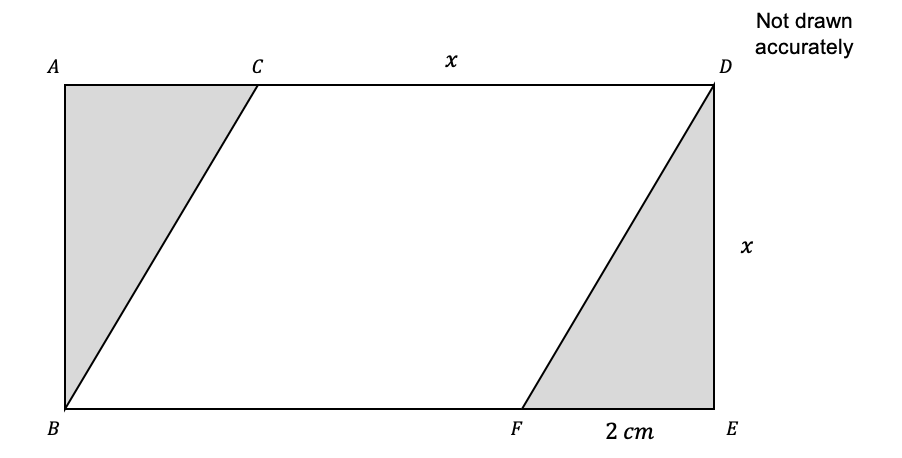 If x = 4 cm, work out the area of the rectangle ADEB.