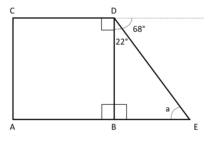 Therefore we can deduce that the triangle BDE is a right-angle triangle (as shown in the diagram above).