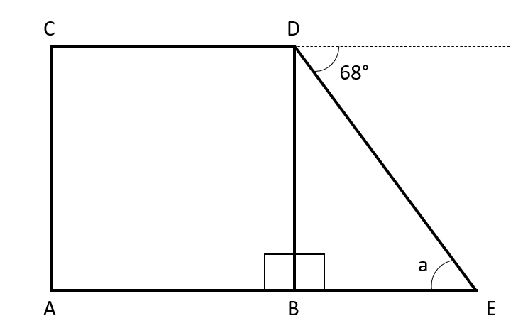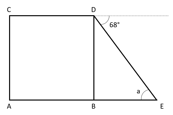 The diagram above shows the square ACDB and a triangle DBE, where ABE is a straight line.