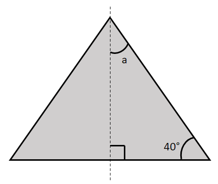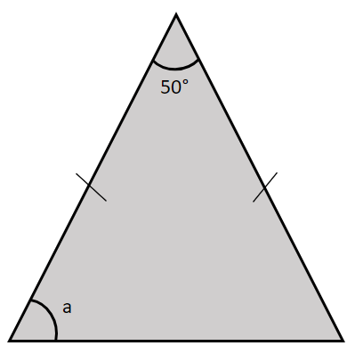 So a=\dfrac{180\degree-50\degree}{2}=65\degree.