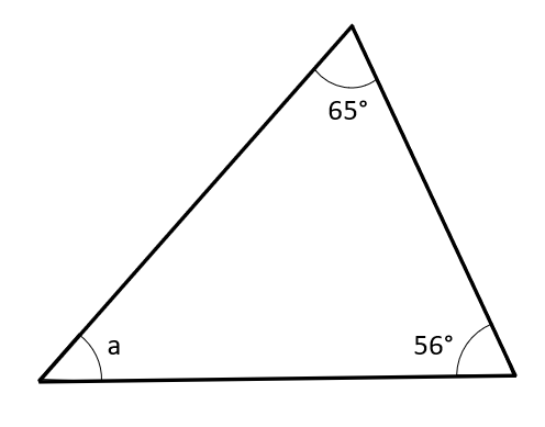 Finally, to find a, we use the fact that angles in a triangle sum to 180\degree.