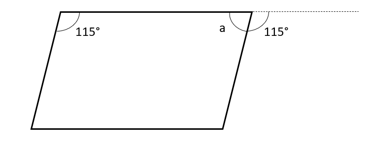As shown in the diagram above, the exterior angle of a is 115\degree.