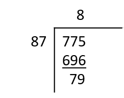 WORKING: 7.75 \div 0.87 is equivalent to 775 \div 87.