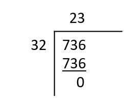 WORKING: 7.36 \div 32 in pounds is equivalent to 736 \div 32 in pence.