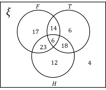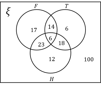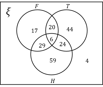 There are 4 students that don’t like any sport. The number of students that like Tennis only is therefore 100-59-17-14-4=6