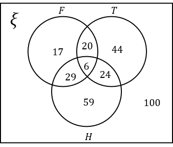 100 students were asked whether they liked Hockey, Tennis or Football.