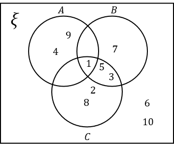 \xi= \text{\{Integers from 1 to 10\}}=\{1,2,3,4,5,6,7,8,9,10\}