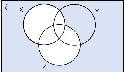 1(c) Which of the following Venn diagrams are correctly labelled with X’s in the regions that represent X \cap Y‘ \cap Z?