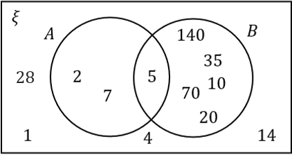 Hence the only number in the intersection is 5, and the numbers 1, 4, 14 remain outside the two circles.