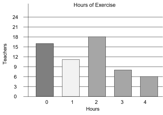 The following graph illustrates the number of hours teachers in a school exercise on a weekly basis.