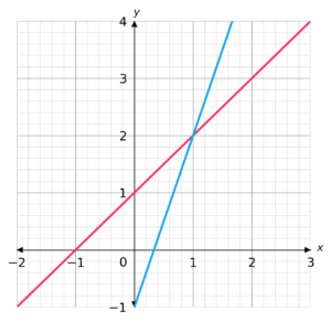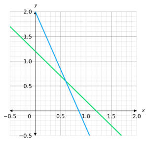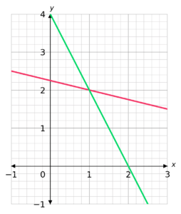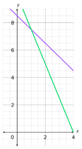 Using the graph, find the solution to the simultaneous equations represented by the lines.