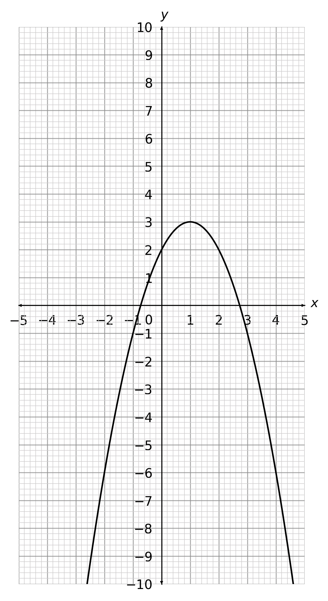 \text{When }x=1 \hspace{1cm}\rightarrow \hspace{1cm}y=-(1)^2+3 = 2