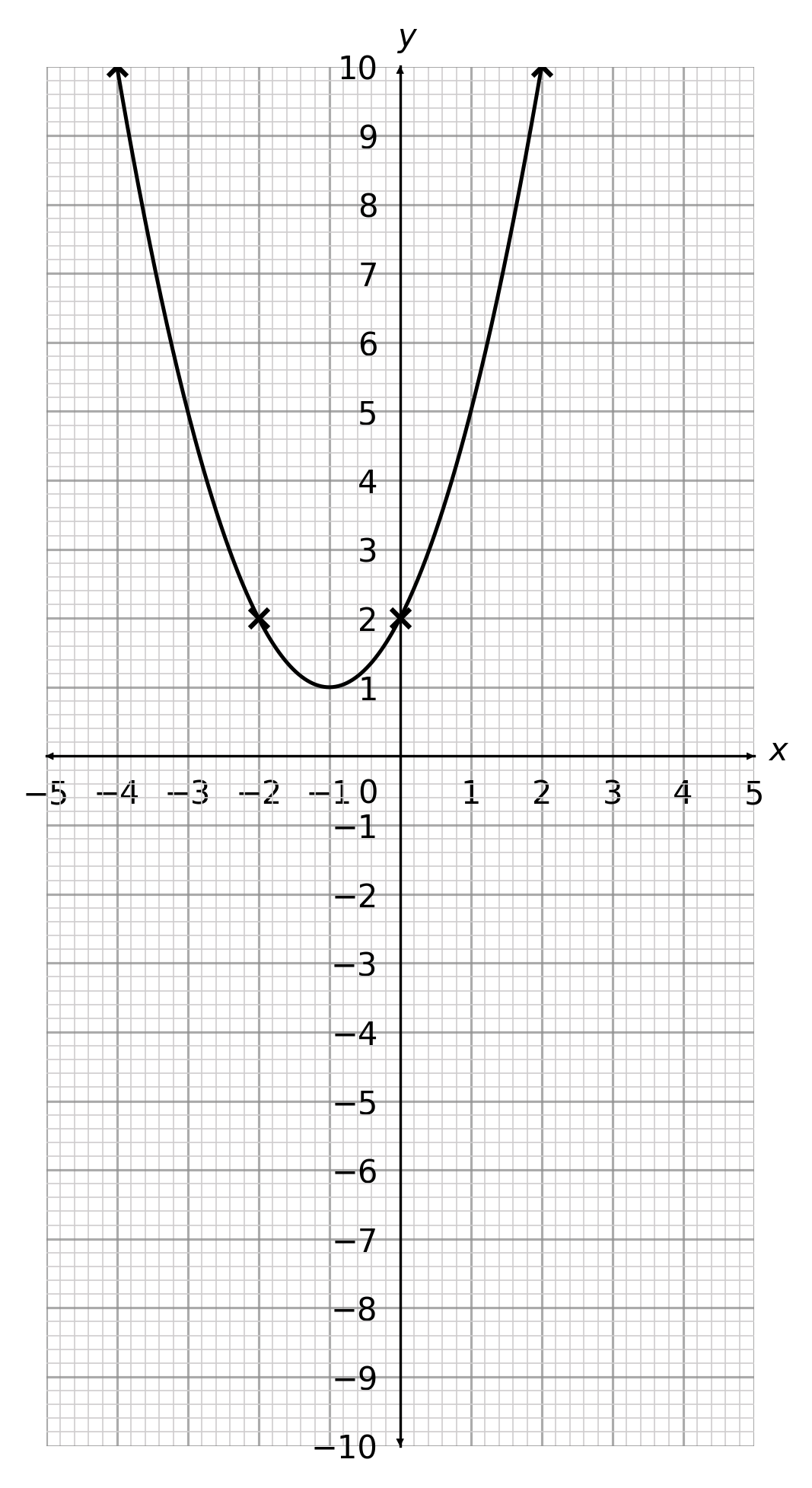 \text{When }x=-4 \hspace{1cm}\rightarrow \hspace{1cm}y=(-4)^2+2(-4)+2=10
