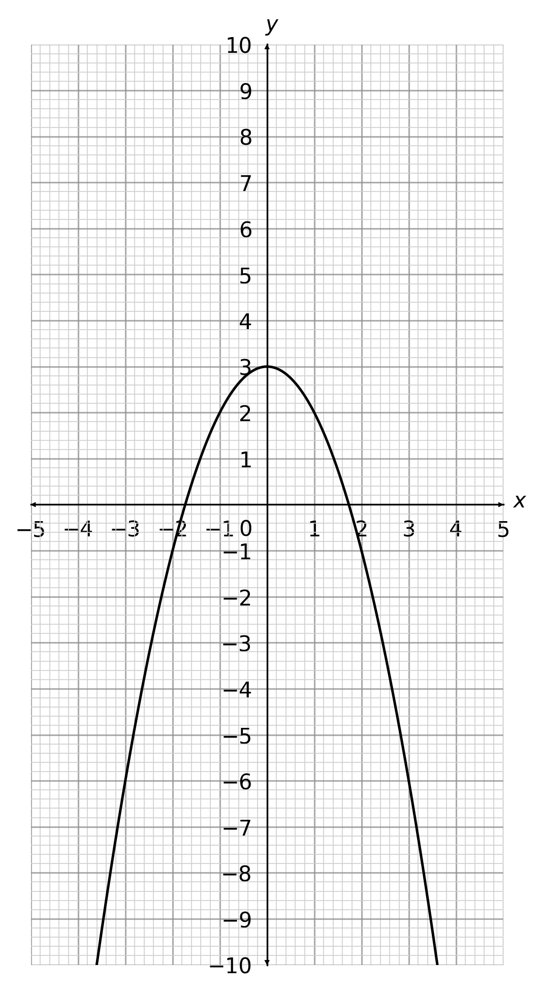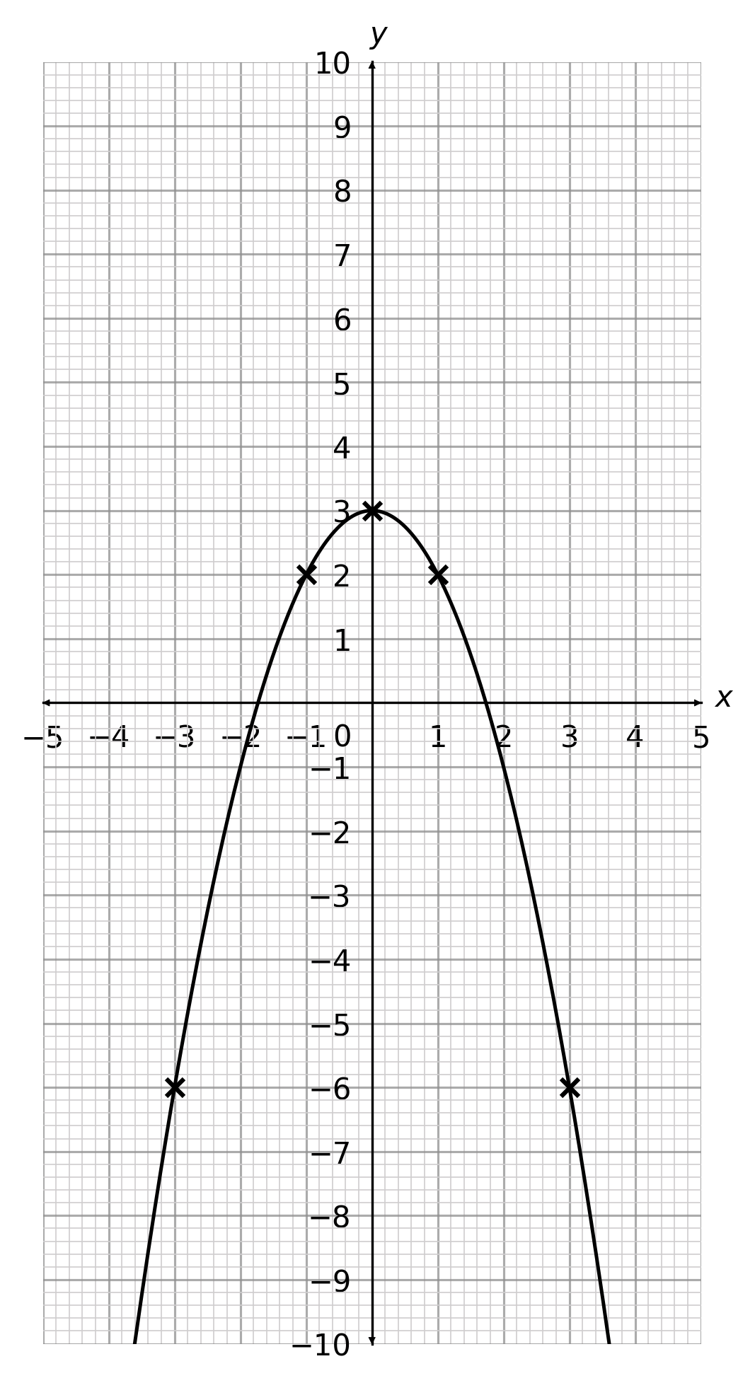\text{When }x=-3 \hspace{1cm}\rightarrow \hspace{1cm}y=-(-3)^2+3 = -6