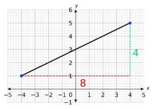 We can see that the distance between the two point is the longest side of the right-angled triangle – the hypotenuse. So we substitute the known values of a and b, into