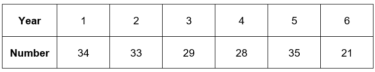 The table below shows the number of pupils in each year for a prestigious primary school.