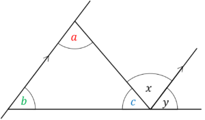 Also, we know that c+x+y = 180^\circ, since angles on a straight line add up to 180^\circ.