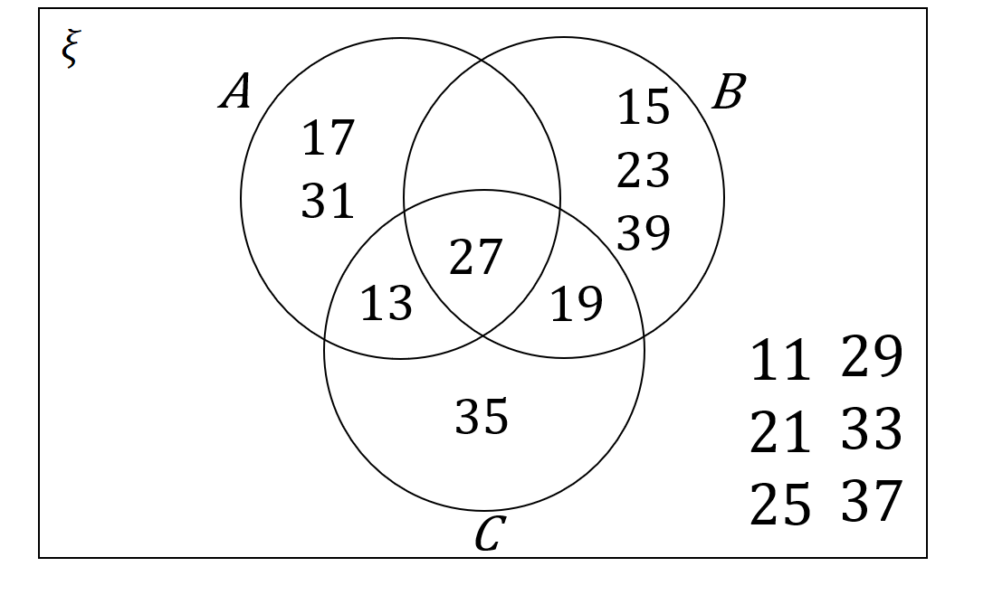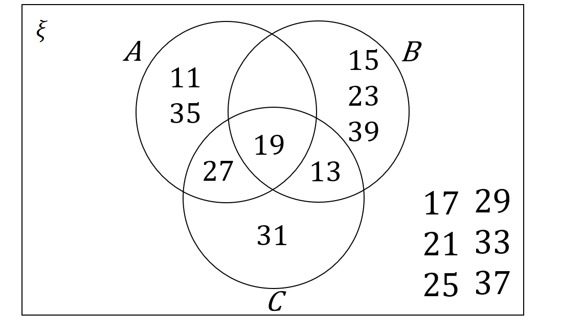 The numbers that satisfy A or C are 11,13,19,27,31,39
